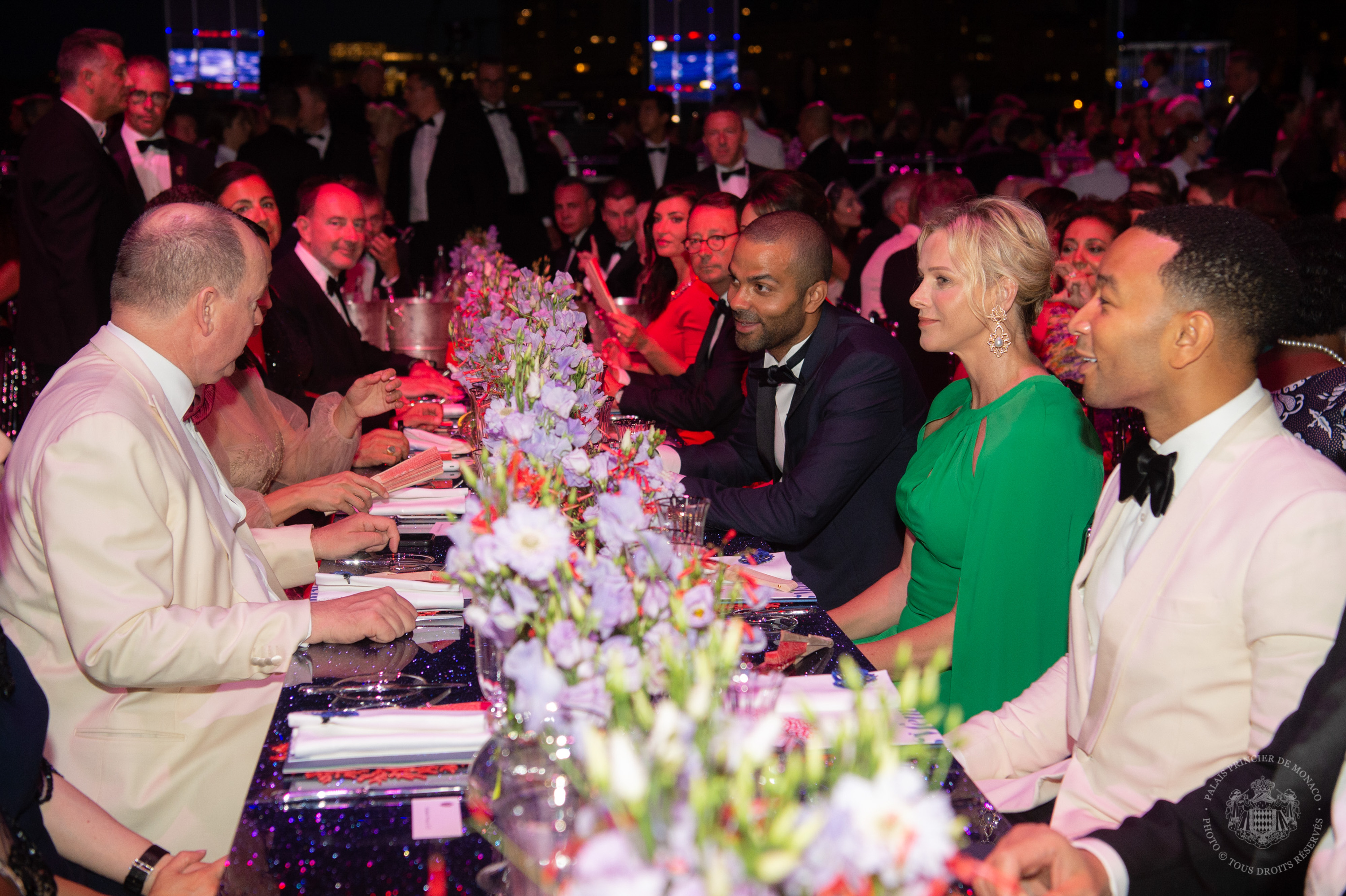 S.A.S. le Prince Albert II de Monaco President de la Croix-Rouge monegasque et de S.A.S. la Princesse Charlene et Monsiuer Tony PARKER et John LEGEND