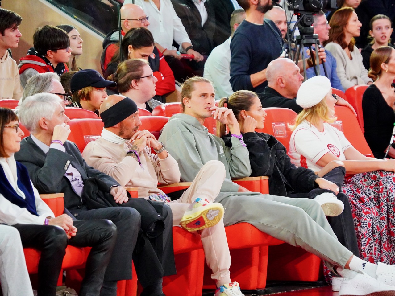 Sasha Zverev alla partita di basket del Monaco che ha battutto il Alla partita di Eurolega dove la Roca Team ha vinto contro il Fenerbahçe la Principessa Charlene è stata accolta da un affettuoso applauso in sieme al Principe Alberto II 76 a 69