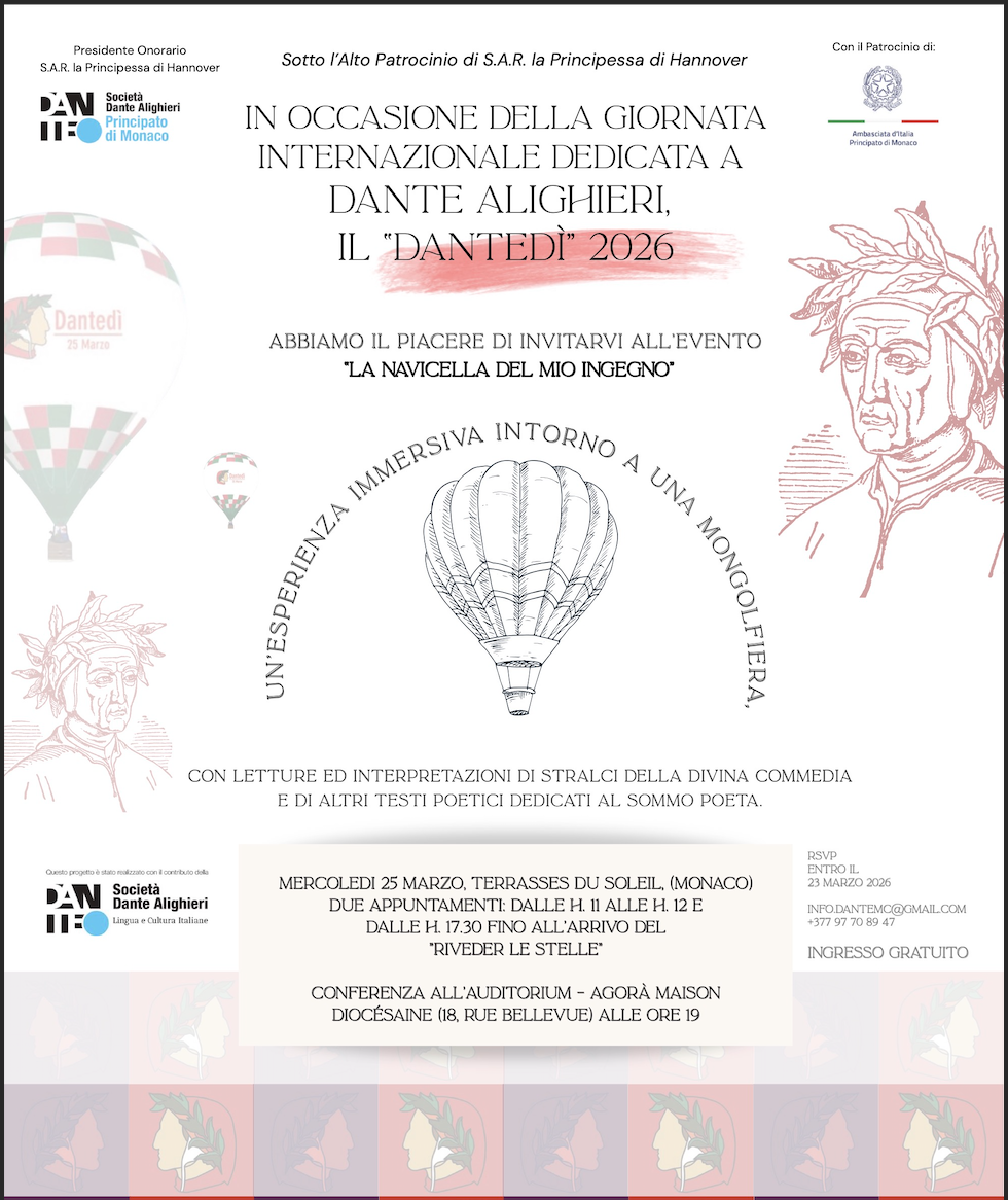 Dalla mongolfiera simbolica alle terzine recitate al tramonto: il Principato celebra Dante Alighieri con una giornata tra arte, lingua e musica.