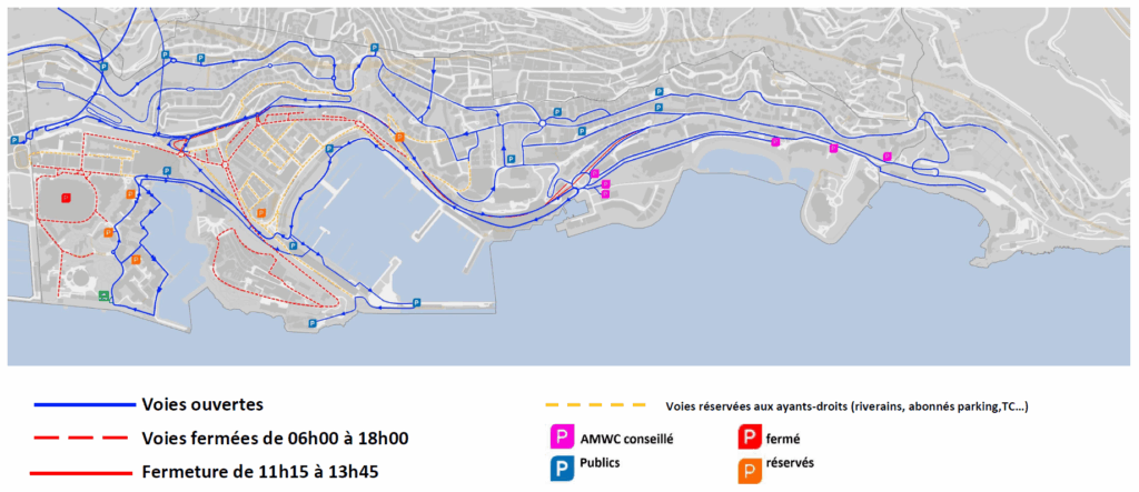 I quartieri di Monaco-Ville, la Condamine e Fontvieille saranno in parte pedonali e soggetti a restrizioni, con alcune strade chiuse tra le 6:00 e le 18:00.